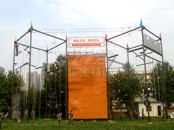 滄州華北特訓器械有限公司,坐落于河北省滄州青縣,靠近京滬高速公路,交通非常便利。公司現(xiàn)占地總面積10000多平方米,廠房8500平方米,是國內(nèi)較早專業(yè)從事拓展訓練器械的研發(fā)、設計、生產(chǎn)、安裝、銷售為一體的現(xiàn)代化企業(yè)。